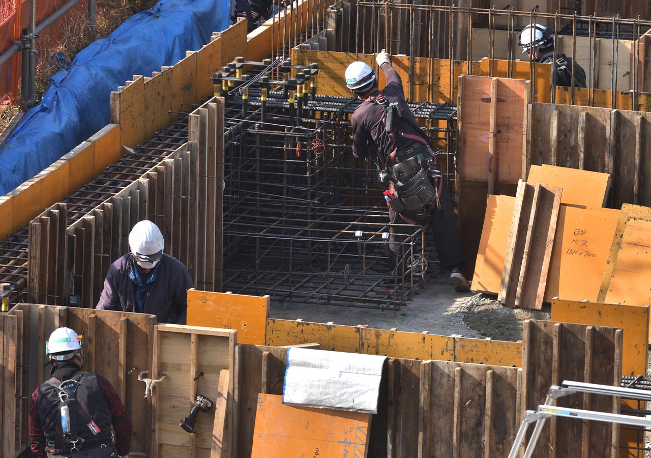 ●杭打設・杭基礎構築: 軟弱地盤や超高層建築物など、建物にかかる荷重が大きい場合、支持層まで強固な杭を打設する杭基礎工事を行います。一本一本の杭が、数十年先の建物の安全を決定づけるため、徹底した品質管理のもとで施工を進行します。